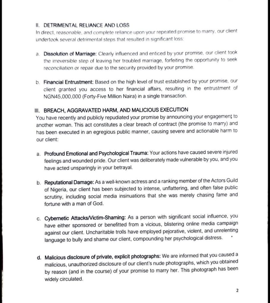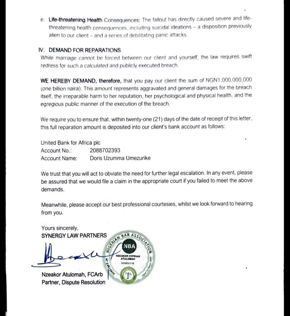The actress is now seeking ₦1 billion in damages, demanding payment within 21 days, failing which she is expected to pursue further legal action. As the claims remain allegations before the court, the case has already ignited conversations around trust, power, and accountability in highly influential relationships.