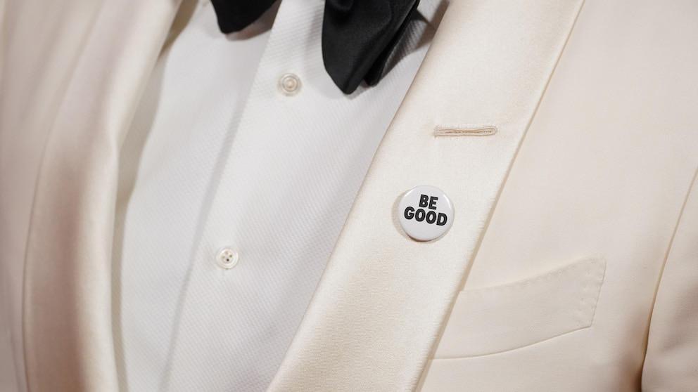 The black-and-white pins, bearing messages such as “BE GOOD” and “ICE OUT,” marked a sharp political turn at the awards ceremony, which had largely avoided political expression the previous year. Actors including Mark Ruffalo, Wanda Sykes and Natasha Lyonne were seen wearing the pins on the red carpet, while Jean Smart and Ariana Grande wore them inside the event hall. Smart kept the pin visible on her outfit while accepting her award for best performance by a female actor in a musical or comedy series.