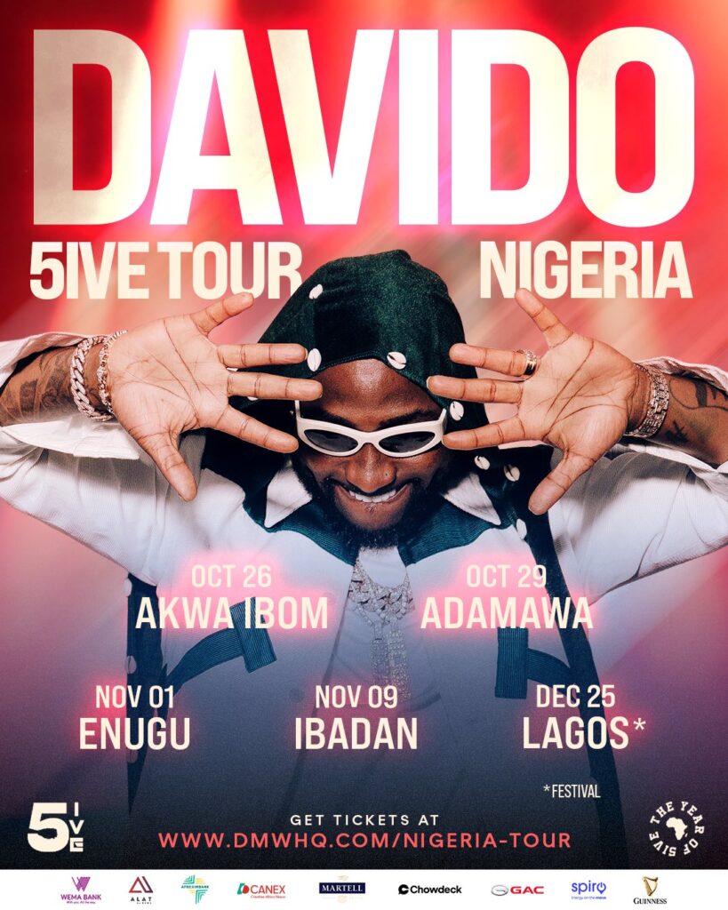 The 5IVE TOUR NIGERIA promises to be more than just concerts—it’s a personal tribute to his homeland, a moment to unite his fans under one vibrant rhythm. Davido’s connection with Nigeria shines through every beat and lyric, making this tour an intimate experience for everyone involved. It’s not just for the world to witness; it’s a love letter to his people.
