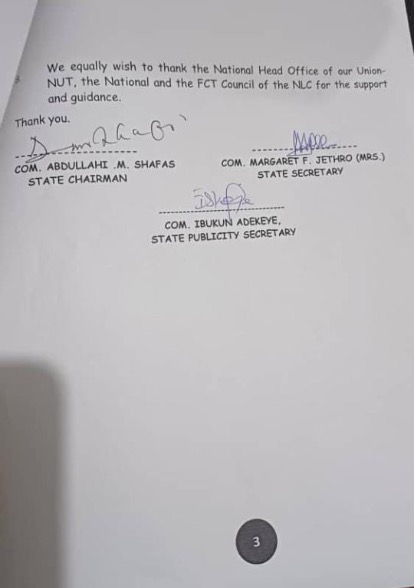 “The union appreciates the teachers for their unwavering support, solidarity and prayers during the strike period,” the communiqué read in part.