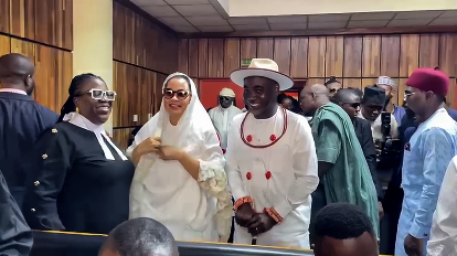 Akpoti-Uduaghan appeared in court accompanied by her husband, Emmanuel Uduaghan; prominent activist Aisha Yesufu; and a group of supporters.