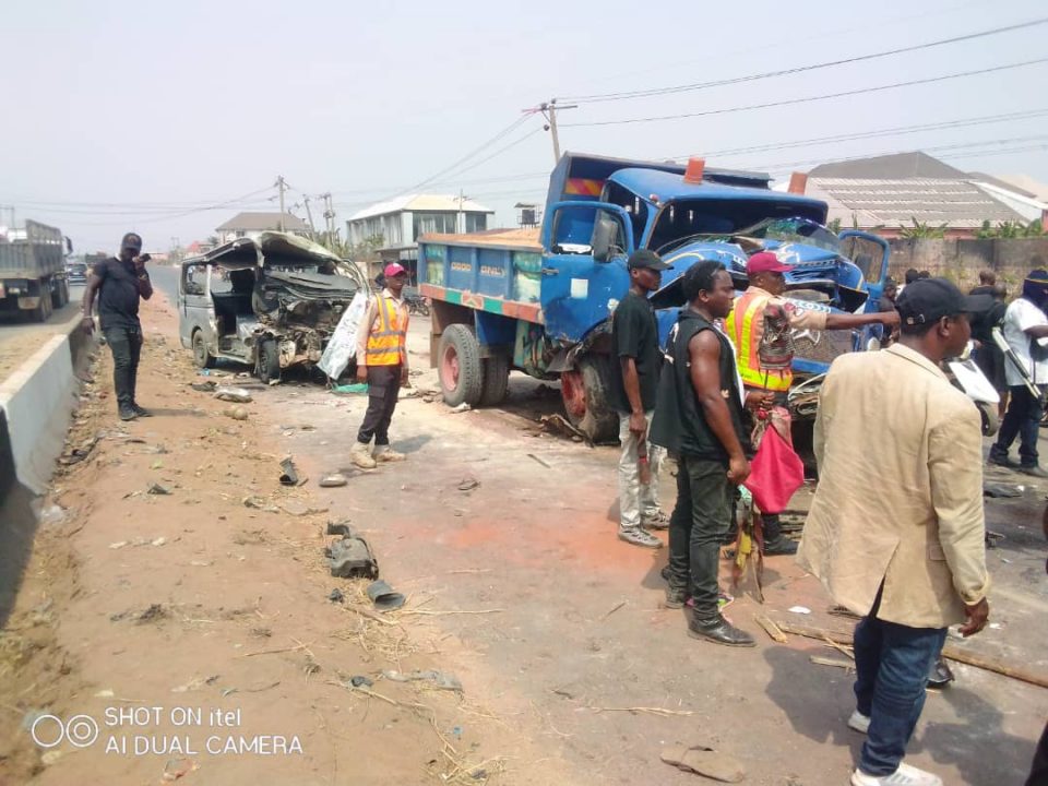 Our correspondent gathered that the driver of the Toyota bus rammed into the tipper as it was driving out of a junction of the road during their daily stop and search operation.