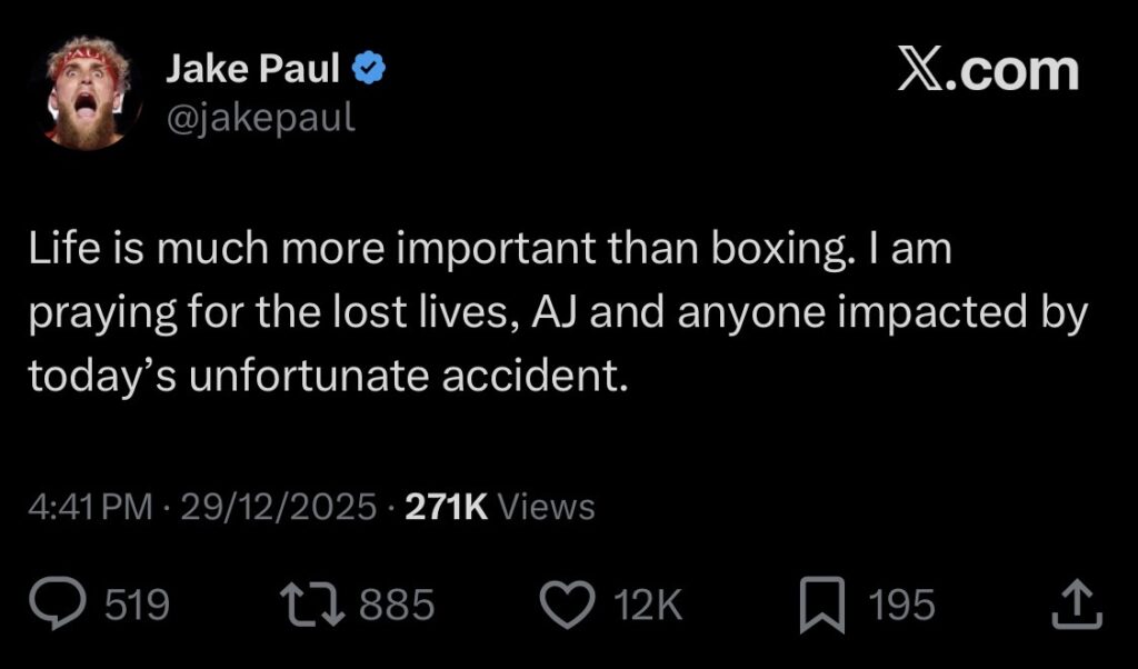 Paul’s message has drawn attention across the boxing community, with fans and athletes alike acknowledging the gesture of solidarity during a moment of grief.