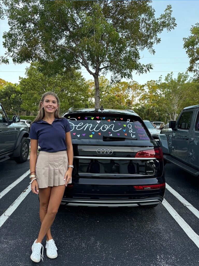 Kai Trump, granddaughter of U.S. President Donald Trump and daughter of Donald Trump Jr. and Vanessa Trump, marked the first day of her senior year with a cheerful display alongside friends. Sharing photos on Aug. 14, the 18-year-old posed with a golden crown as she and classmates painted “Senior 2026” on their car windows in bright colors. Kai also paid homage to her next chapter, adding “All about the U” to celebrate her commitment to the University of Miami women’s golf team.