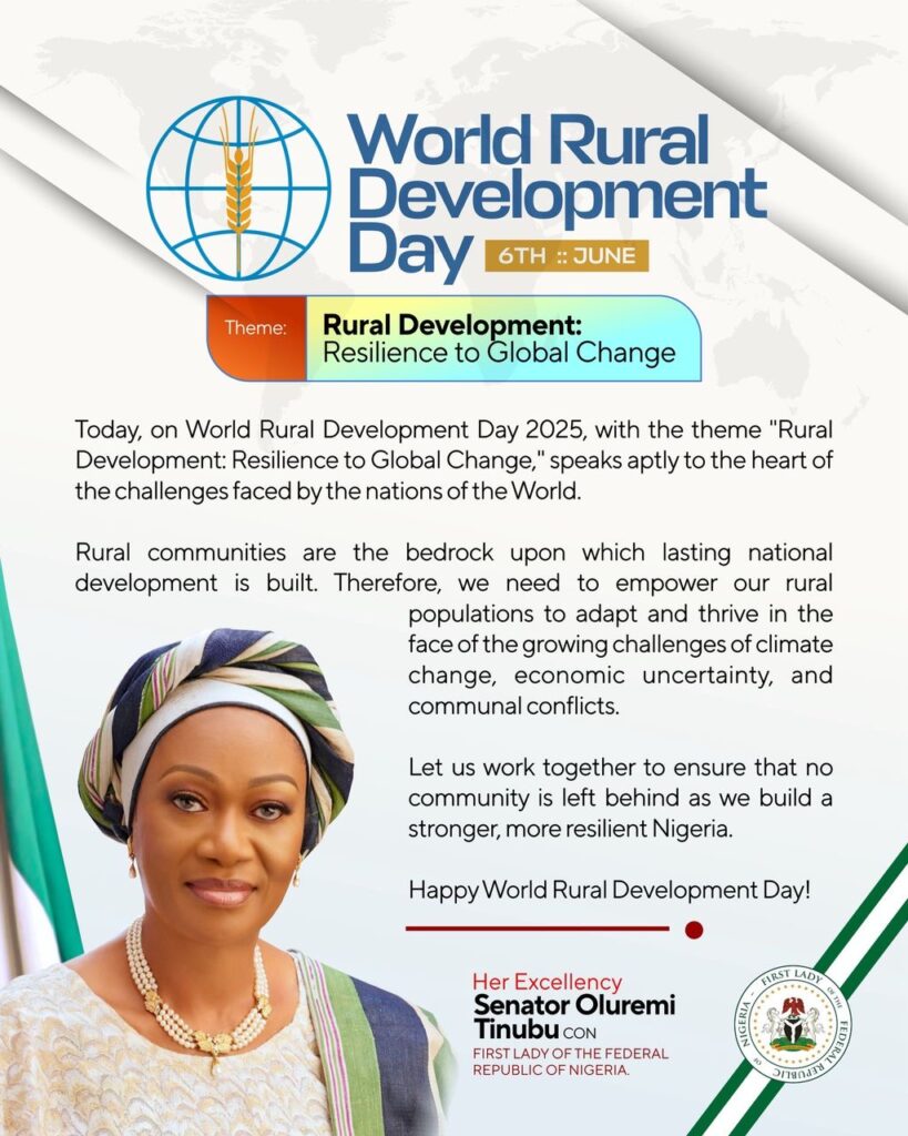 MESSAGE BY THE FIRST LADY OF THE FEDERAL REPUBLIC OF NIGERIA , HER EXCELLENCY SENATOR OLUREMI TINUBU, CON, ON WORLD RURAL DEVELOPMENT DAY