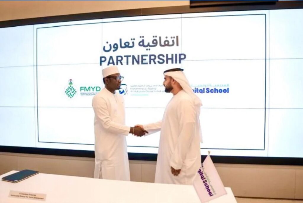The Honourable Minister of Youth Development, Ayodele Olawande, signed a Memorandum of Understanding (MoU) with the UAE Digital School, led by Dr. Waleed Al Ali, under the Mohammed bin Rashid Al Maktoum Global Initiatives (MBRGI), during a ceremony held in Dubai.