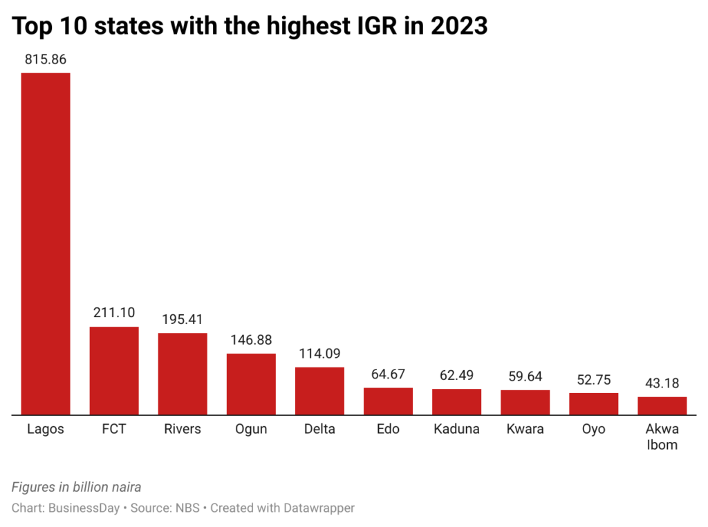 Lagos State continued to lead the charge in revenue generation, accumulating a remarkable N815.86 billion in IGR. This figure not only surpasses the combined revenue of 18 other states but also exceeds the total IGR generated by the South East, North West, and North East regions of the country. The FCT and Rivers State followed closely behind Lagos in IGR rankings.