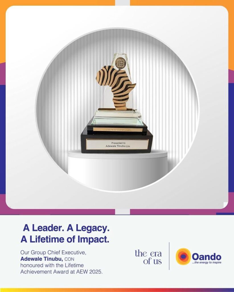 In its citation, the African Energy Chamber hailed Tinubu for his “dedication to advancing Africa’s energy security, his bold leadership in navigating Oando through periods of uncertainty and transformation, and his pivotal role in demonstrating the power of indigenous companies in driving industrial growth and energy sovereignty.” He joins an elite group of past recipients, including Professor Benedict Oramah (Afreximbank, 2024), the late President Hage Geingob of Namibia, Former President Macky Sall of Senegal (2023), and Congo’s Hydrocarbons Minister Bruno Jean Richard Itoua (2022).