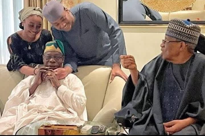 Former President Olusegun Obasanjo paid a visit to Minna, Niger State, on Monday, where he was seen spending time with the children of former military president, General Ibrahim Badamasi Babangida (rtd).