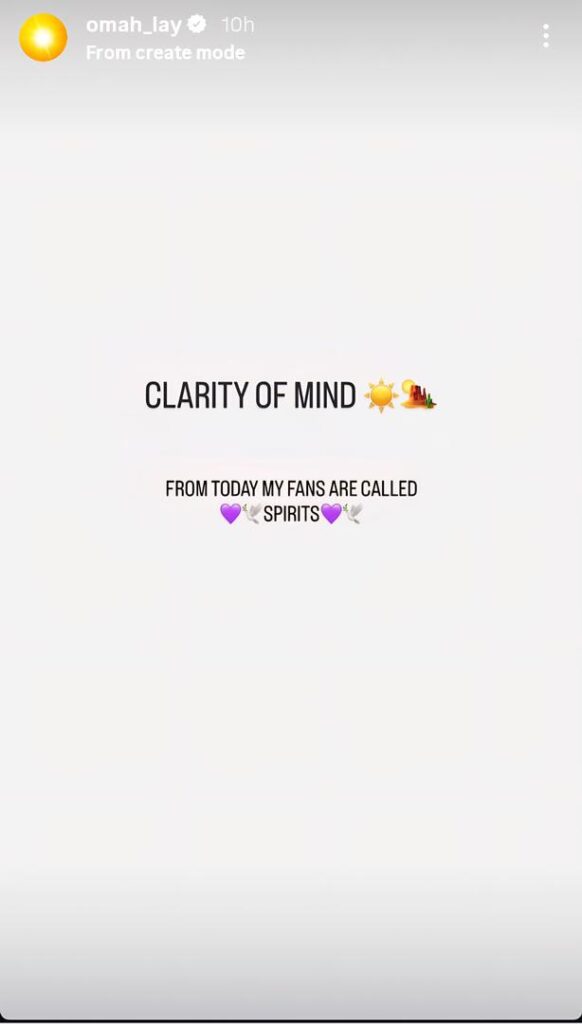 The artist’s heartfelt words have already sparked a wave of responses on social media, with fans embracing the “Spirits” identity proudly. As Omah Lay continues to rise in the music world, it’s clear that his relationship with his fan community remains at the core of his success.