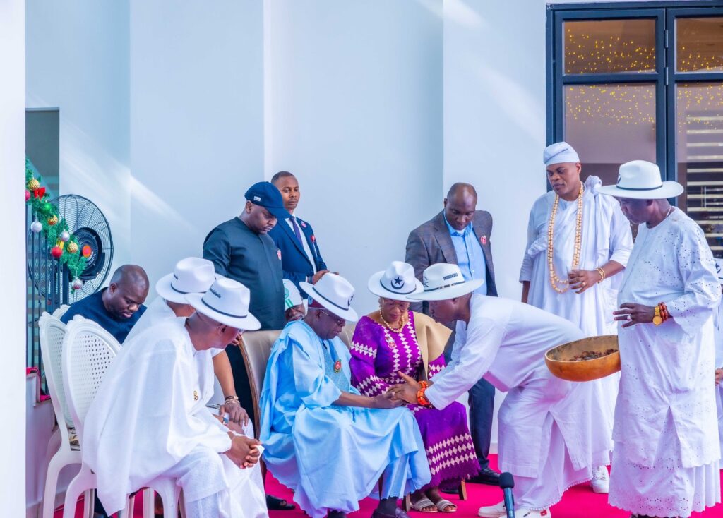 President Bola Ahmed Tinubu, accompanied by the First Lady and the Governor of Lagos State, Babajide Sanwo-Olu, on Sunday received the organizers of the Eyo Festival at his Lagos residence.