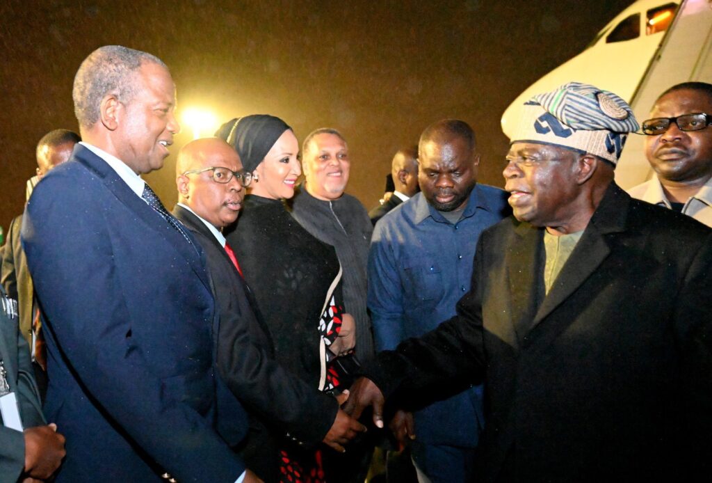 President Bola Tinubu landed in Cape Town, South Africa, for the 11th Nigeria-South Africa Bi-National Commission. He was warmly received by South Africa’s Minister of International Relations, Roland Lamola, and Nigeria’s Minister of State for Foreign Affairs, Bianca Odumegwu-Ojukwu. The session aims to strengthen bilateral ties between both nations.