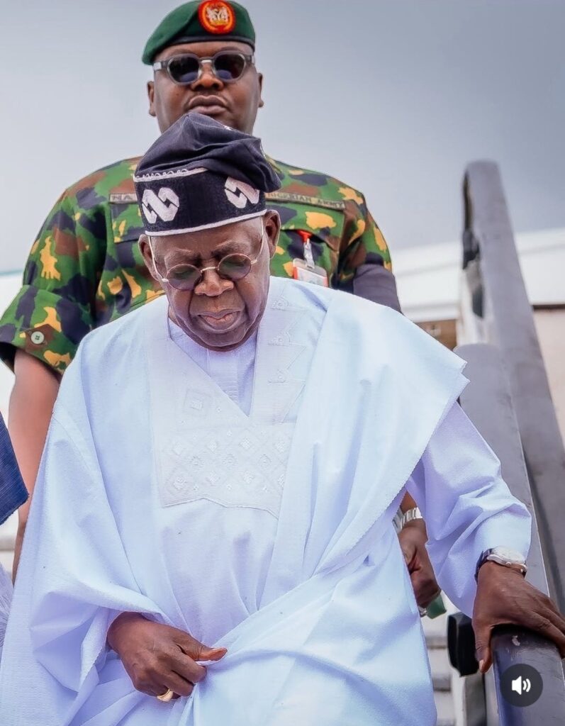 President Bola Tinubu left Lagos for Abuja on Wednesday evening, concluding his Eid-el-Fitr celebrations and a historic visit to the United Kingdom. His plane departed from the Presidential Wing of Murtala Muhammed International Airport at 6:44 pm.