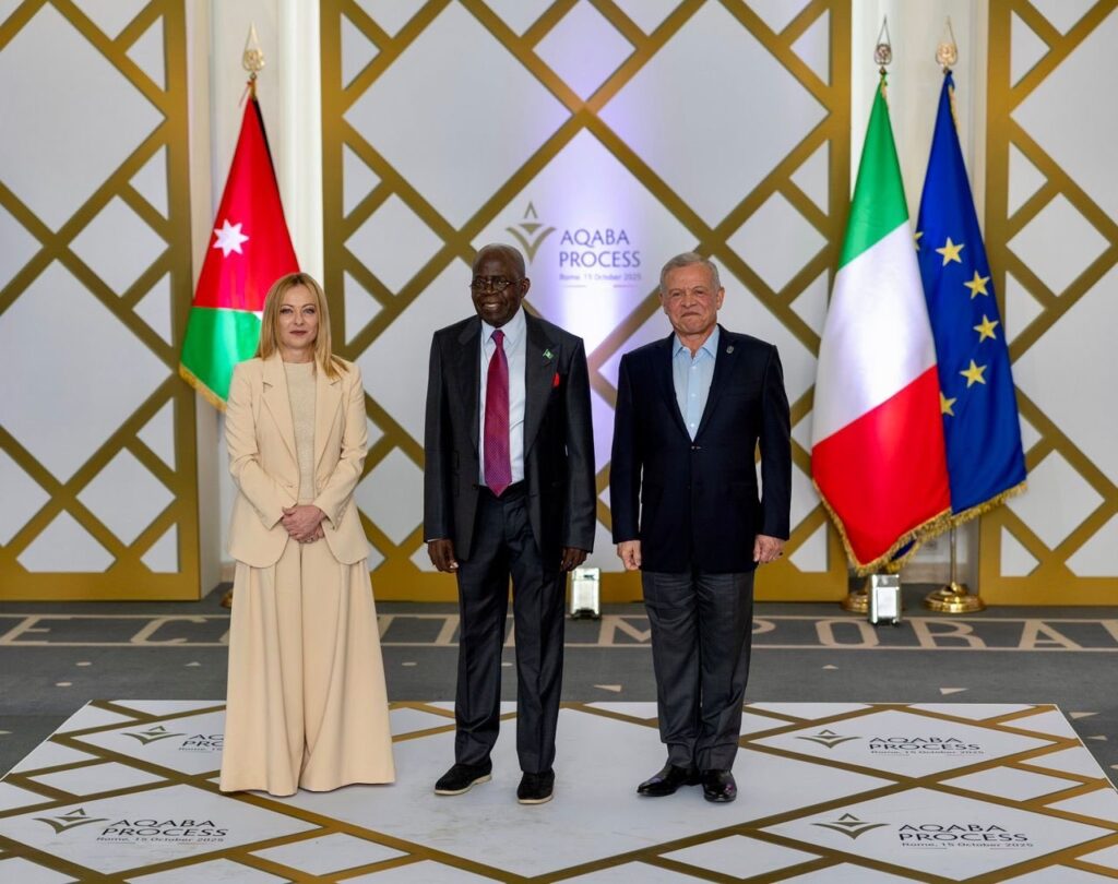 President Bola Ahmed Tinubu held a high-level meeting with the Prime Minister of Italy, Giorgia Meloni, and His Majesty King Abdullah II of Jordan on the sidelines of the Aqaba Process Heads of State and Government-Level Meeting in Rome, Italy.