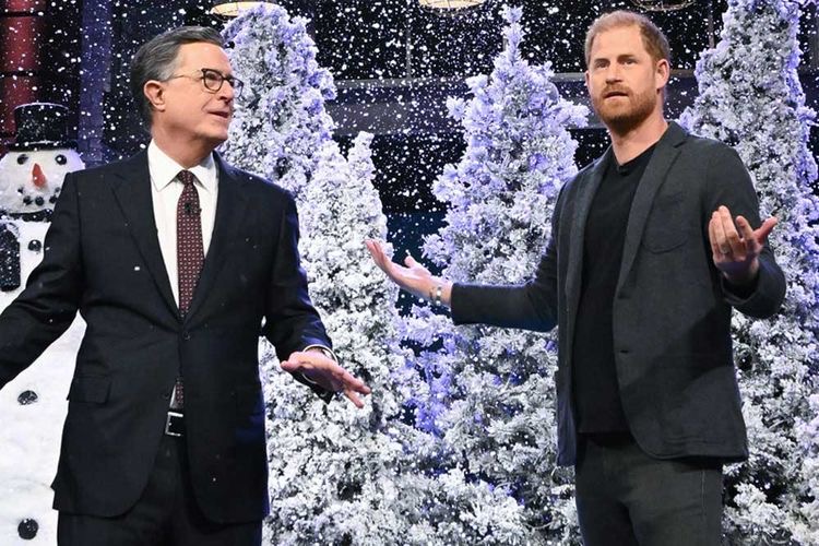 Prince Harry brought festive chaos — and plenty of laughs — to The Late Show with Stephen Colbert when he unexpectedly joined a segment poking fun at made-for-TV Christmas movies. Colbert was joking about how Hallmark films give Americans “unrealistic expectations” of bumping into royalty during the holidays when the Duke of Sussex suddenly strolled onstage, perfectly timing his entrance for comedic effect.