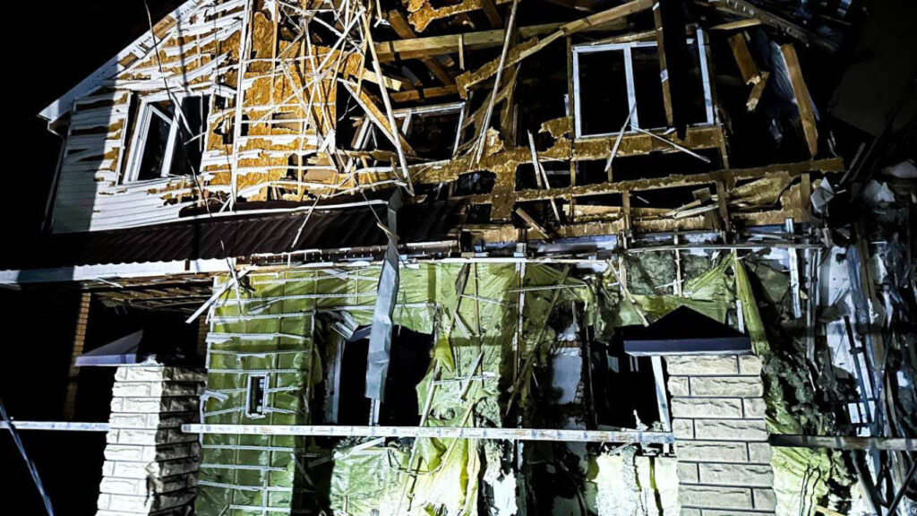 According to Kalashnyk, a truck driver was killed by debris from a Russian drone that had been shot down. Additionally, wreckage struck a house, injuring three people, including a 16-year-old boy and his father.
