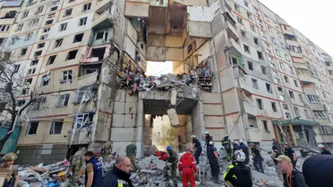 The strikes, which targeted the high-rise and other residential areas, utilized guided glide bombs on Tuesday. Ukrainian President Volodymyr Zelensky condemned the attacks, stating, “The targets for Russian bombs are residential buildings, a bakery, a stadium—essentially, the everyday lives of ordinary people.”