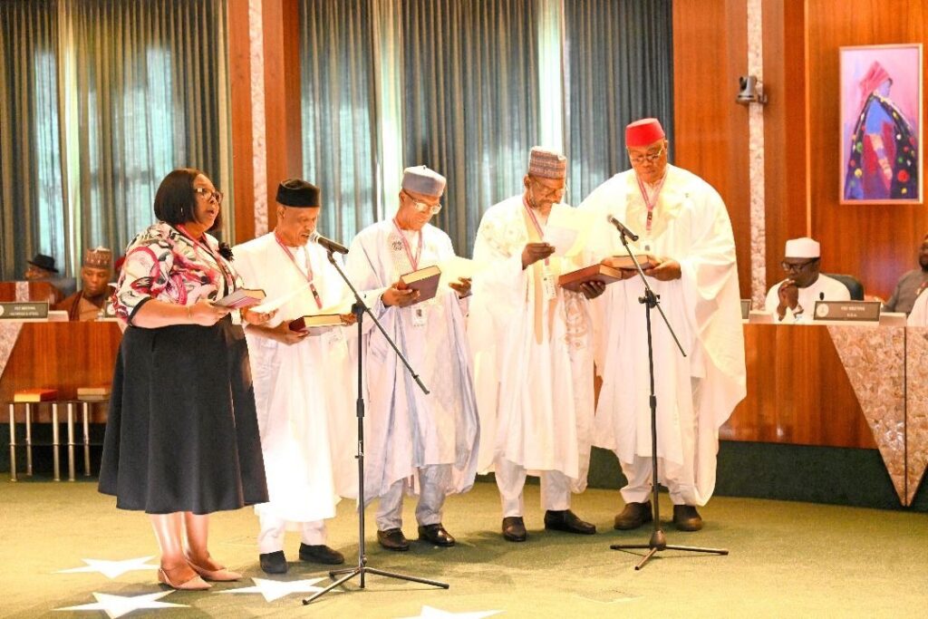 President Bola Ahmed Tinubu has sworn in five newly appointed permanent secretaries alongside the Chairman of the National Population Commission (NPC), Dr. Aminu Yusuf, during Wednesday’s Federal Executive Council (FEC) meeting at the State House, Abuja. Two NPC Board Members, Dr. Joseph Haruna Kigbu and Tonga Betara Bulatafa, also took the oath of office.