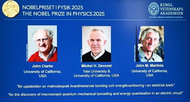 Three scientists, John Clarke, Michel H. Devoret, and John M. Martinis, have been awarded the 2025 Nobel Prize in Physics for their groundbreaking work on quantum mechanical tunneling, demonstrating that quantum phenomena can occur in macroscopic electrical circuits.