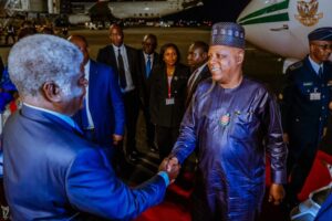 Vice President Kashim Shettima has arrived in Abidjan, Côte d’Ivoire, to represent President Bola Ahmed Tinubu at the presidential inauguration of President Alassane Ouattara.
