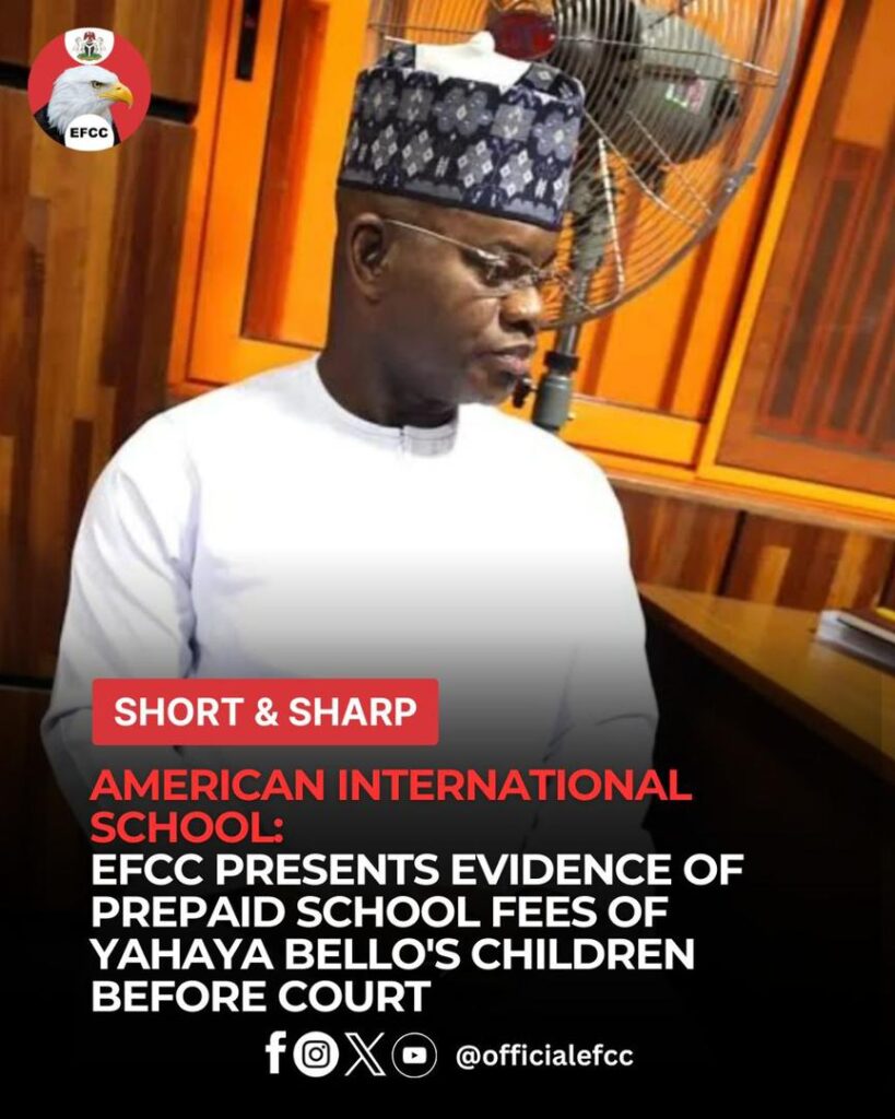 A prosecution witness in the trial of a former governor of Kogi State, Yahaya Adoza Bello, on Thursday, March 12, 2026 narrated before the Federal Capital Territory, FCT, High Court, Maitama, Abuja, how a total sum of $760,910.84 was paid as advance school fees for children of the former governor at the American International School Abuja (AISA).