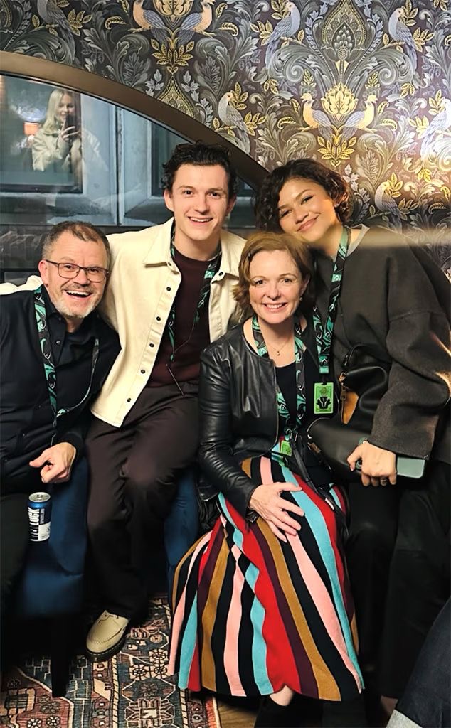Photos shared via Instagram Stories by the London venue captured the couple smiling brightly with their loved ones. Zendaya, 29, debuted a chic short bob hairstyle paired with a gray sweater and dark red lipstick, while Tom, also 29, kept things coordinated in a burgundy sweater. Sam Holland later shared highlights from the night, including a photo of the couple posing with their parents, jokingly revealing that his twin brother Harry ended up being the “Traitor” of the group during the interactive experience.